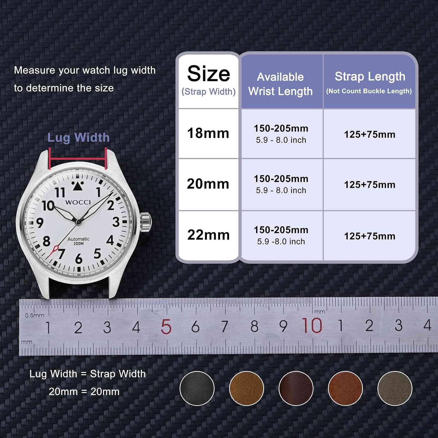 Leather-based Materials: Prime Grain LeatherBand Width (Dimension): 18mm 20mm 22mmThickness: 3 mm – 4.5 mmPadding: Semi-paddedAvailable Wrist Size: 15 cm to twenty.5 cm (5.9 to eight inch)