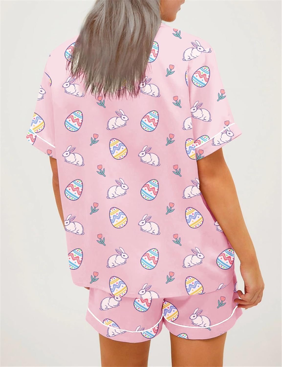 Situation: 100% Model NewMaterial: 100% PolyesterFabric: Silk SatinStyle: Cute, Informal, StylishGender: FemalePattern: Rabbit Print/ Bunny Ears/ Bow/ Colourful Egg/ Coronary heart/ FlowerColor: Grey/ White/ Pink/ Blue/ RedSize: S/ M/ L/ XLFit: Informal Unfastened Match/ OversizedTops Design: Shorts Sleeve Button Up Shirts, Lapel Notch Collar V Neck Shirt TopsBottom Options: Elastic Waist, Large Leg, Excessive Waisted Shorts Lounge Pjs PantsOccasion: Easter, Occasion, Day by day, Dwelling, Lounge, Sleep, Going Out, VacationSeason: Spring, Summer time, Fall