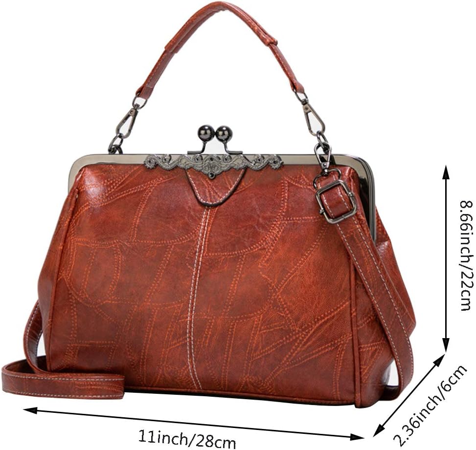 RainboSee Ladies Retro Kiss Lock Purse Purse Oil Wax PU Small Tote Satchels Shoulder Crossbody Bag