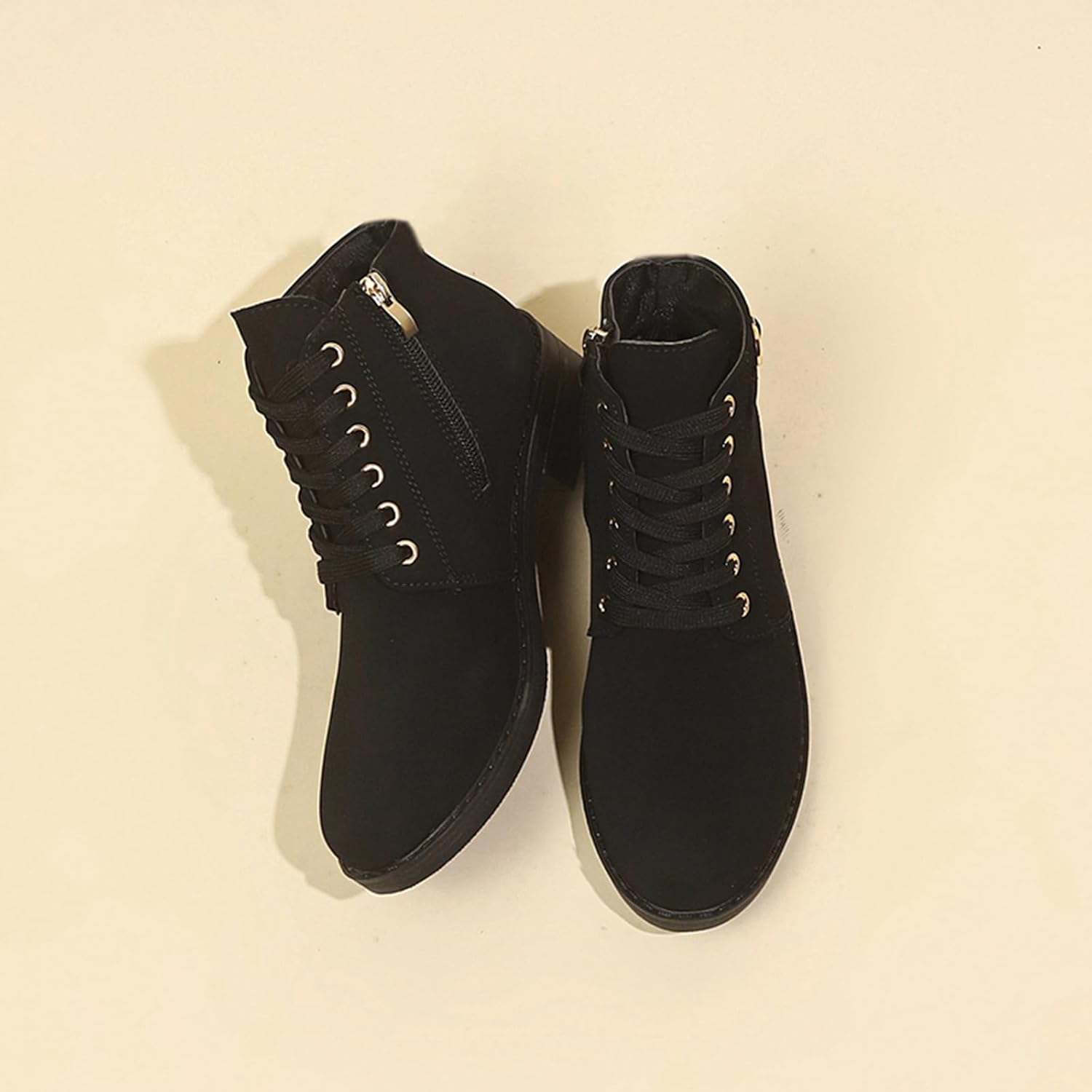 Ladies Lace Up Ankle Boots, Lug Sole Chunky Heel Fight Bootie Facet Zipper