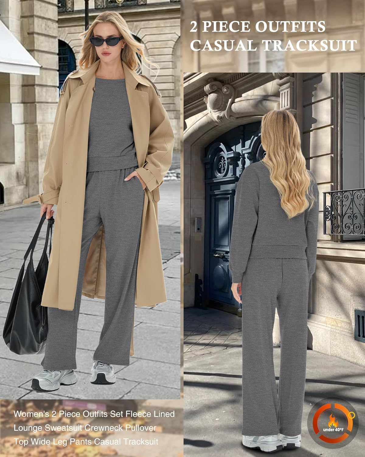 This can be a fashionable but useful fall outfit. The set holds up after a number of washes, no pilling, shrinking, or fading. The stitching is stable, and the elastic waistband is agency and useful. Advisable washing in chilly water, tumble dry low or hold/line dry.