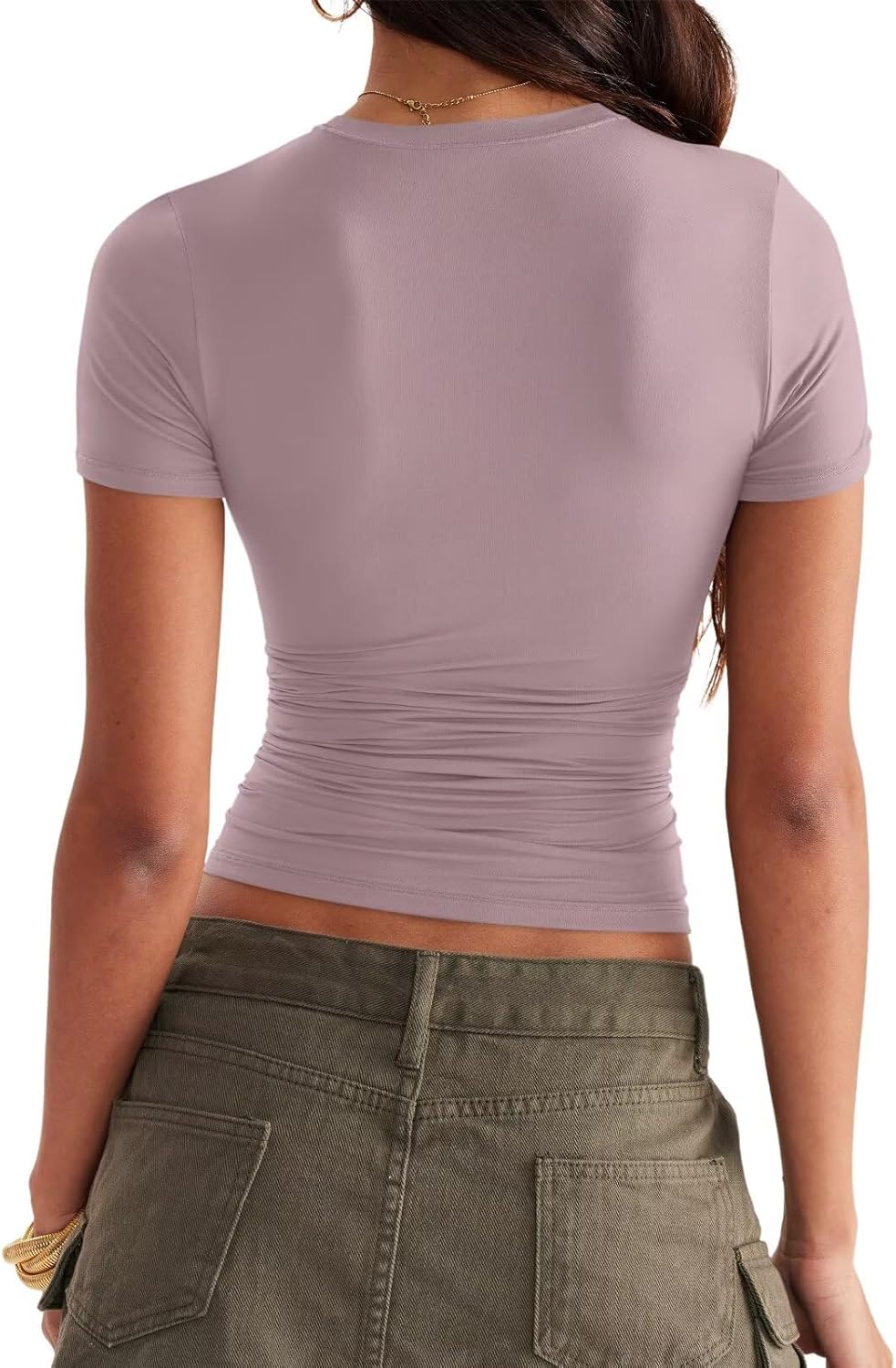 OVANVISO Girls’s Crewneck Double Lined Quick Sleeve T-Shirts Primary Slim Match Tops