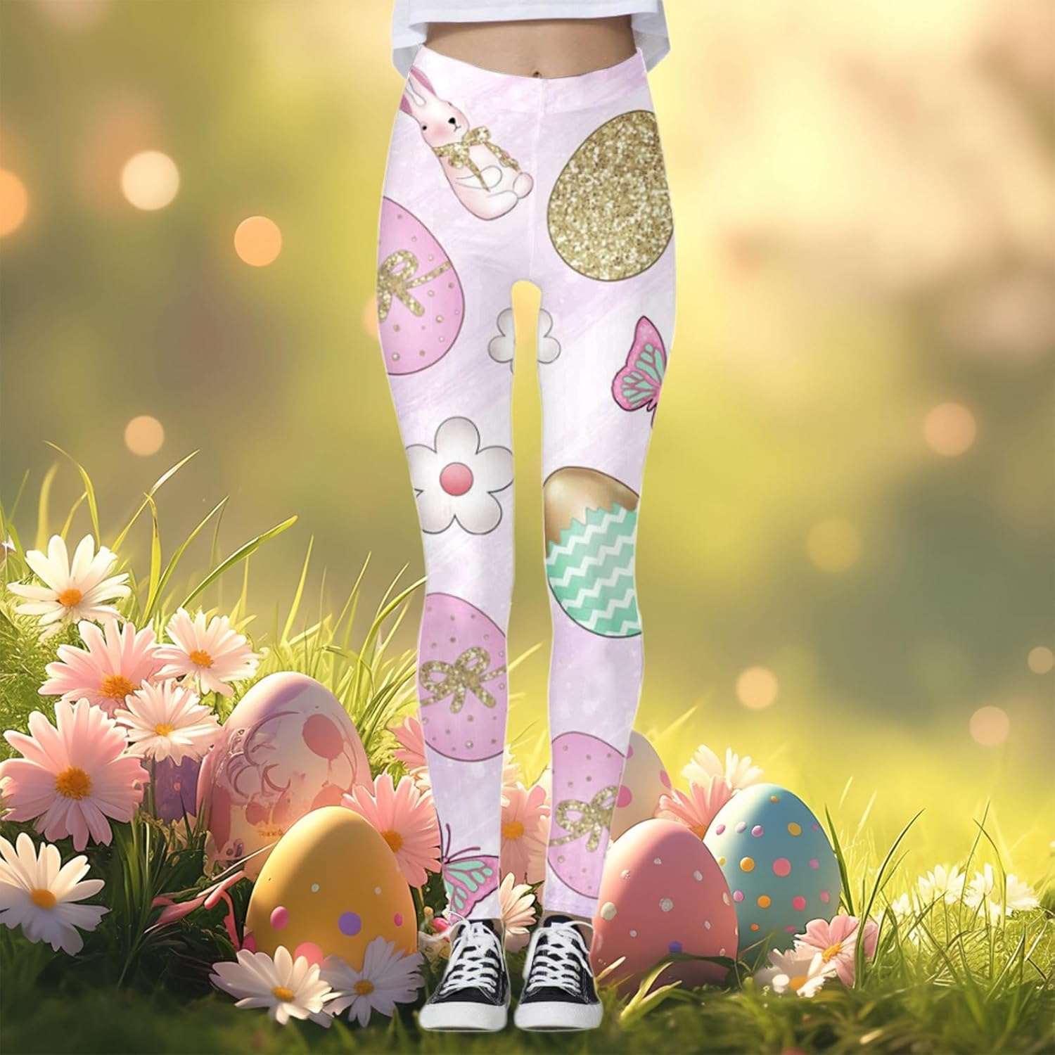 Womens Easter Leggings Easter Day Bunny Print High Waist Tummy Control Yoga Pants Super Stretch Workout Running Tights