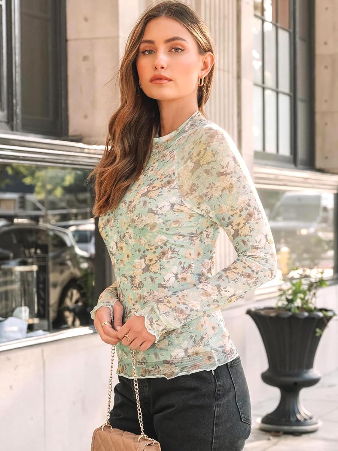 Merchandise mannequin quantity : FL-LSFloralMeshTopF89
