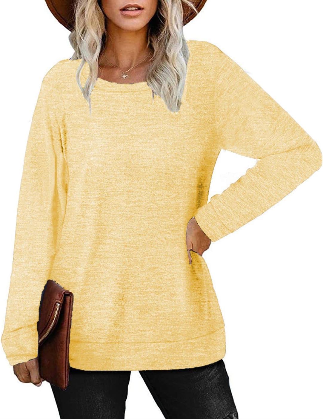 UQOIIL Womens Sweatshirts Crewneck Light-weight Sweaters Lengthy Sleeve Shirts Stable Colour Informal Tunic Tops