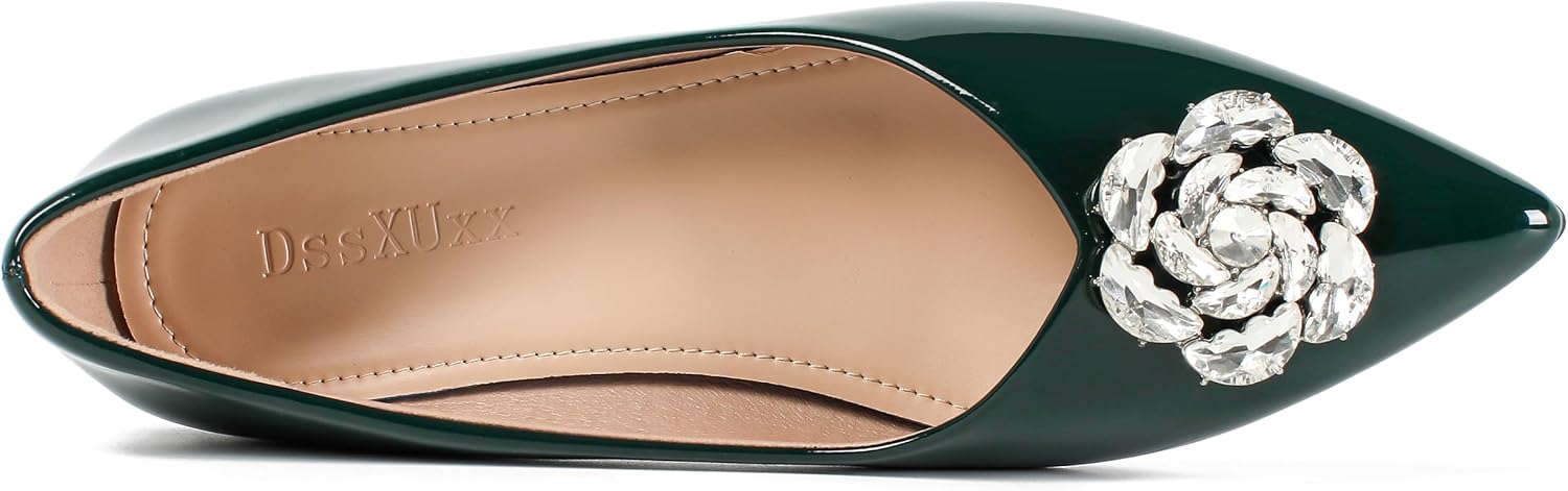 Women’s Low Chunky Block Heels Pointed Toe Rhinestone Comfortable Slip on Dress Pumps Work Wedding Parties Shoes