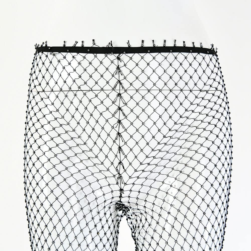 Ladies Sparkly Crystal Fishnet Mesh See By way of Pants Rave Pageant Occasion Summer season Seaside Clubwear