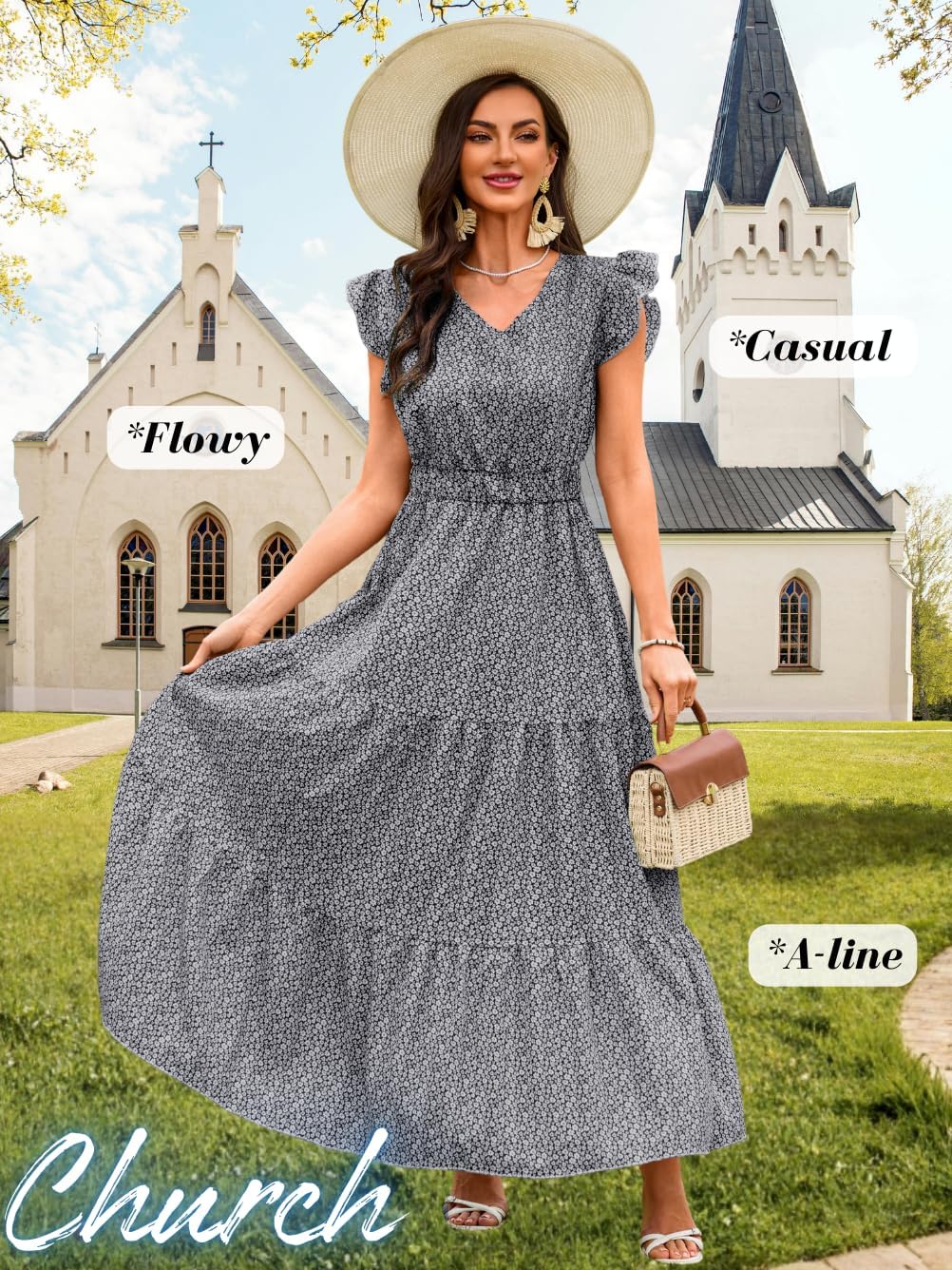 Women’s Modest Floral Maxi Sundress, Flutter Sleeve Flowy Long Dress for Spring Casual Summer Beach