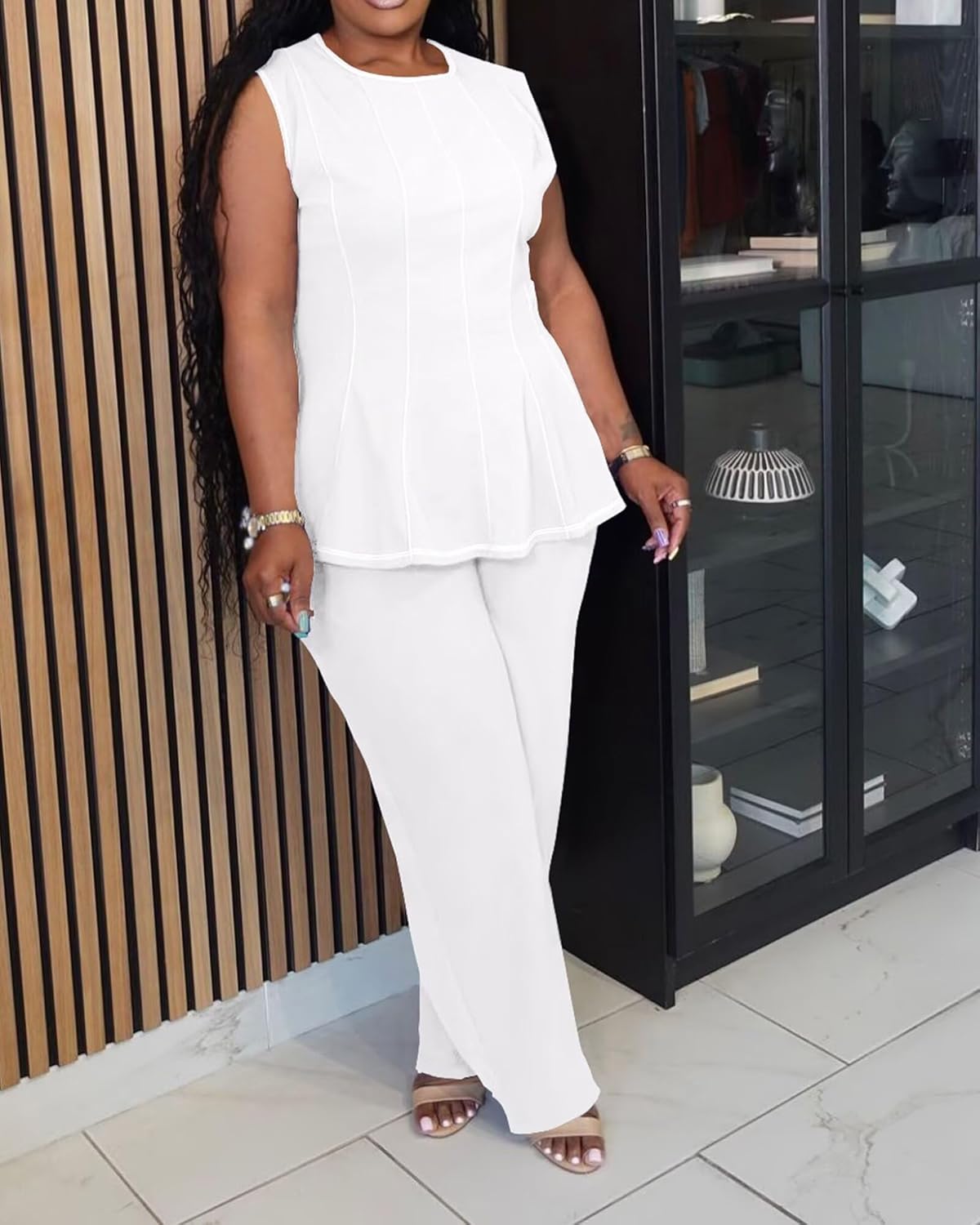 Straightforward to decorate up with heels or maintain informal with flats, this plus measurement matching set, pantsuit, two piece outfit, sleeveless work set, peplum high and pants set, curvy ladies outfit, and stretchy workplace put on is a flexible wardrobe important .