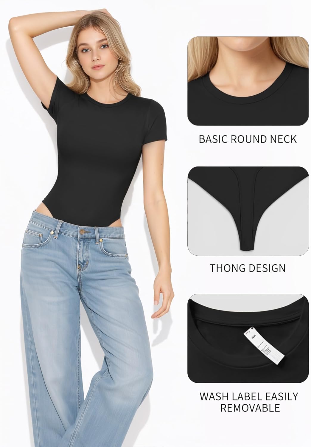 Womens Short Sleeve Thong Bodysuits Crew Neck Stretchy Body Suits Basic Outfit T Shirts Summer Tops 2026