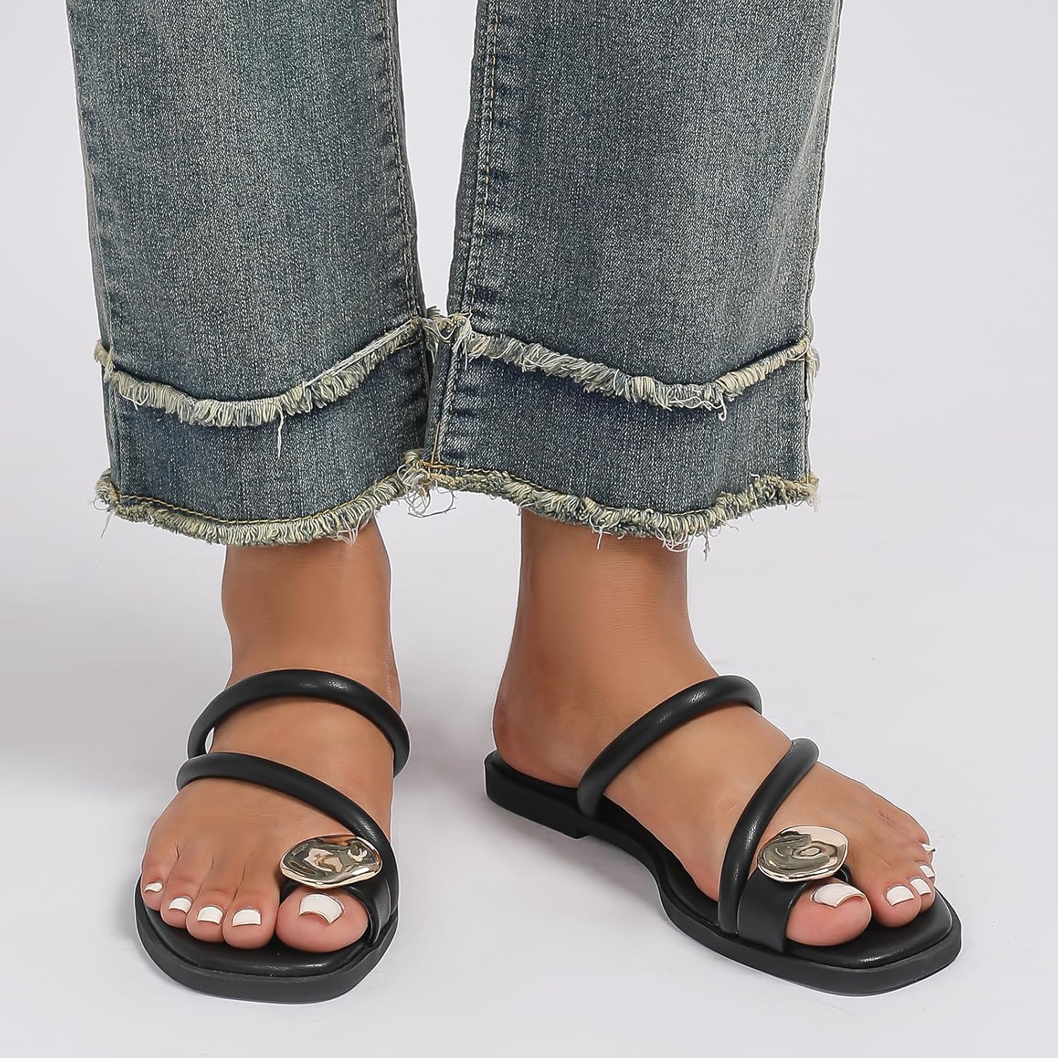 Women’s Toe Ring Thong Sandals Open Toe Slide Flat Sandals Casual Summer Flip Flop Flat Sandals