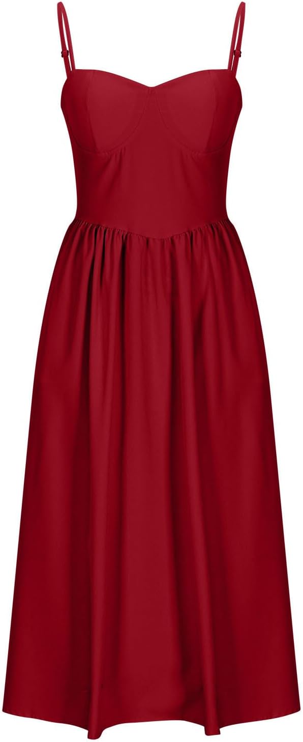 Women’s Vintage Corset Dress Spaghetti Strap A-Line Midi Dress Elegant Cocktail Party Evening Dresses