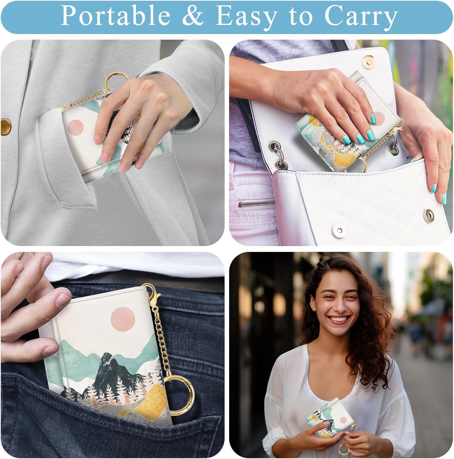 Distinctive Design: The small girls pockets features a detachable keychain, a small pockets; It’s designed with varied distinctive artwork: dawn sundown mountain, that are lovely and trendy