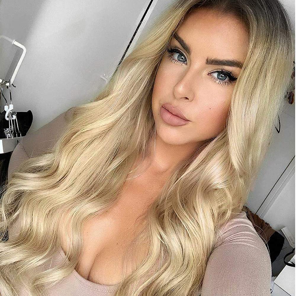 The Lace Half is 13*3, 100% Tender Warmth Resistant Fiber lengthy blonde wavy wig 100% Tender Warmth Resistant Fiber