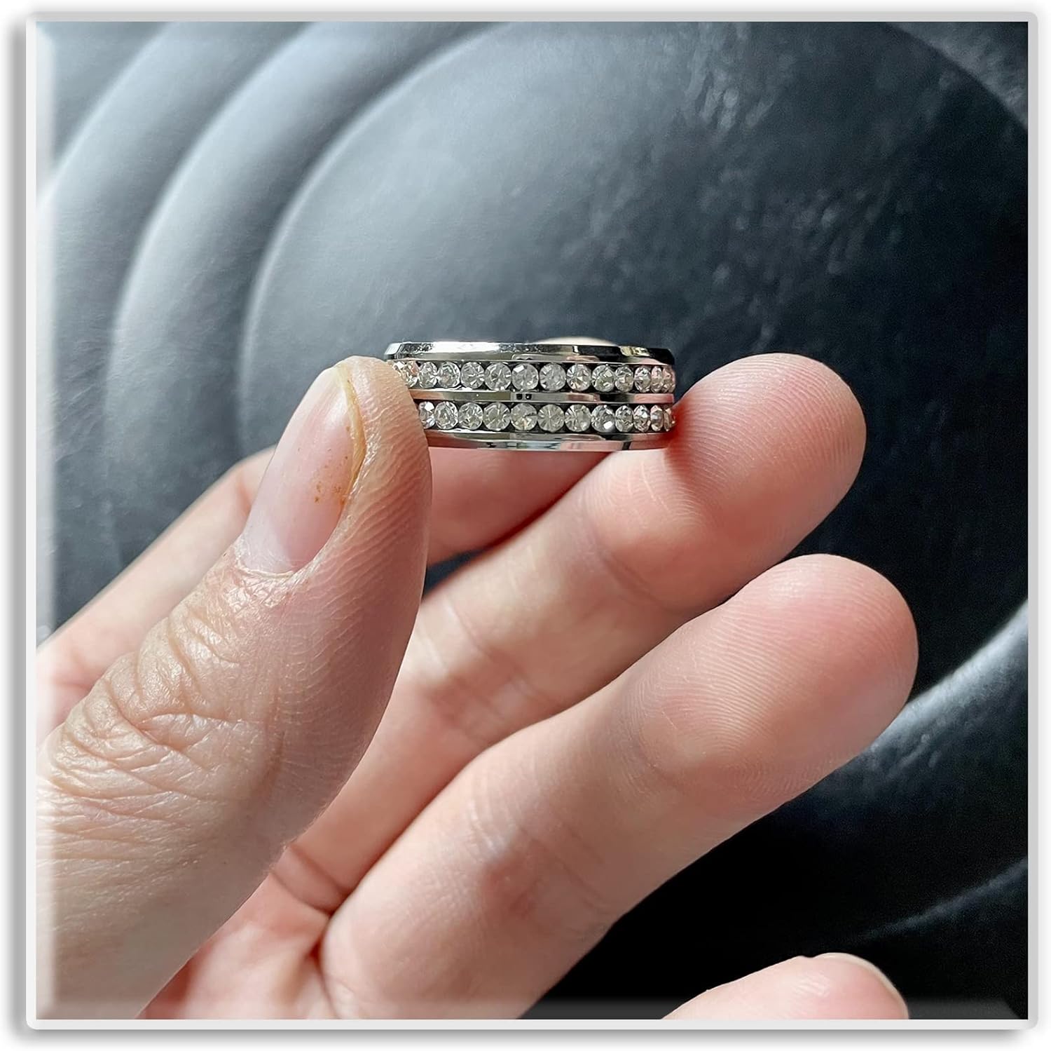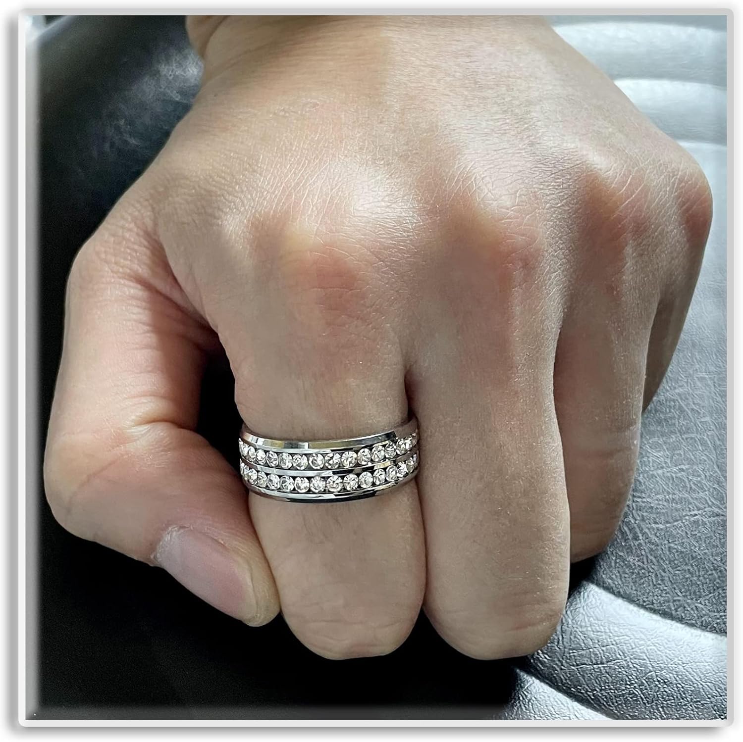 Xusamss Fashion Stainless Steel Double Row Iced Out Crystal Band Ring