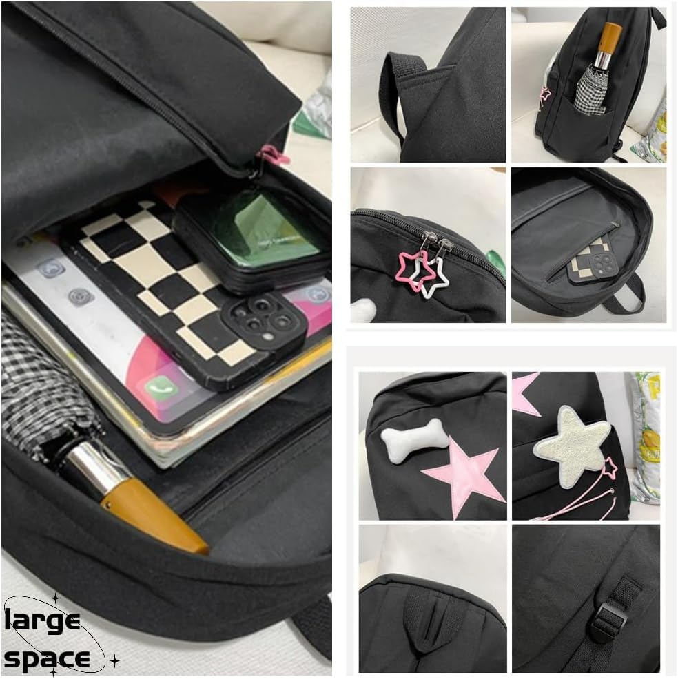 Distinctive and Stylish Design: Y2K Backpack with cute y2k star pendent,patch and random plush toy.
