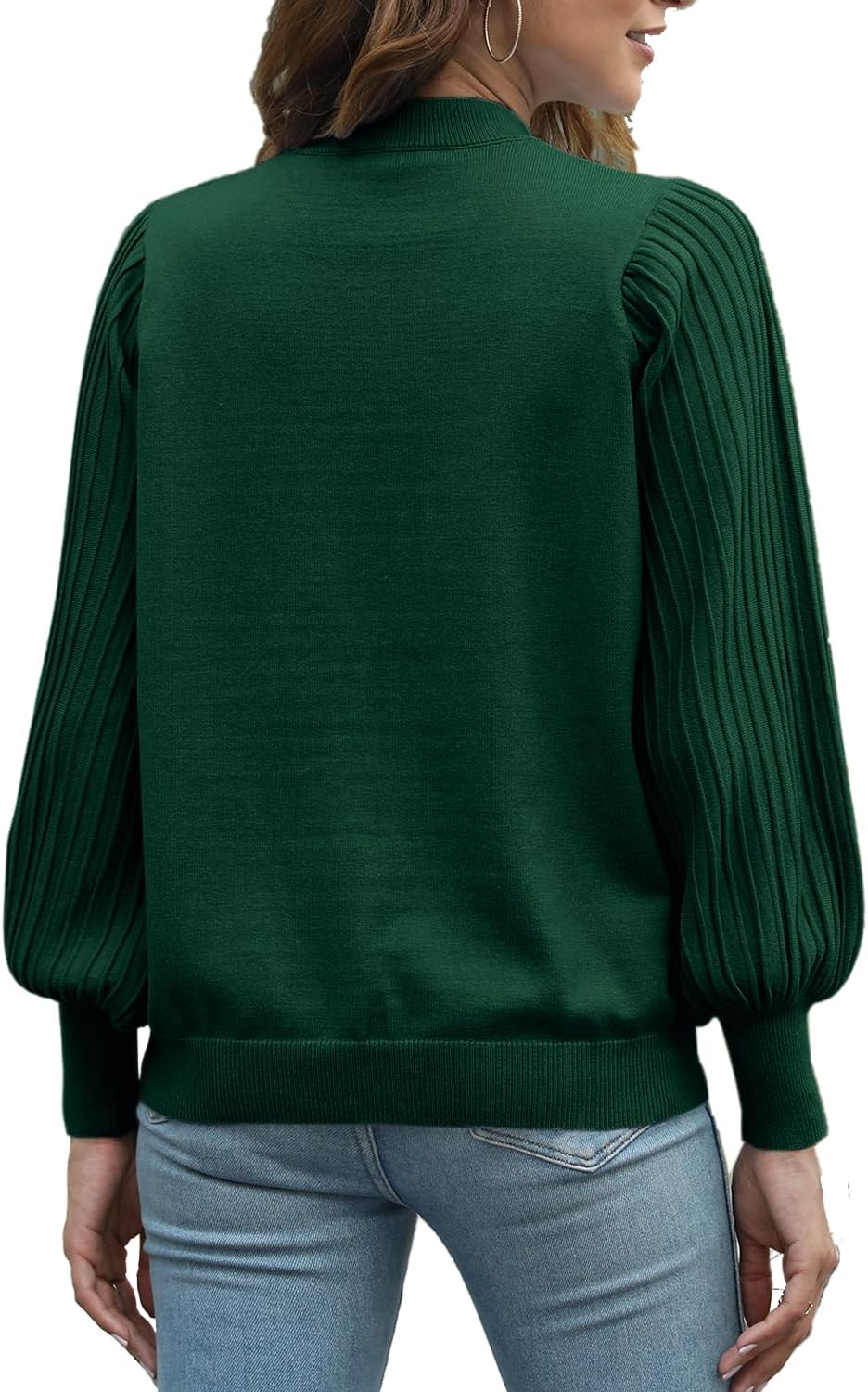 Ybenlow Women’s 2024 Casual Crewneck Pleated Lantern Long Sleeve Pullover Sweater Loose Ribbed Knit Jumper Tops
