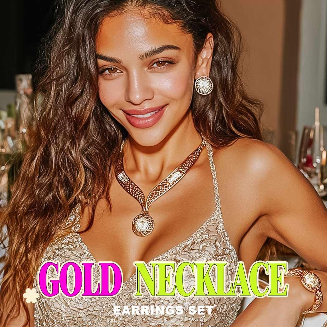 Gold costume jewellery set attracts inspiration from retro African design, mixing intricate patterns with up to date sparkle to create a glance that’s each nostalgic and recent.