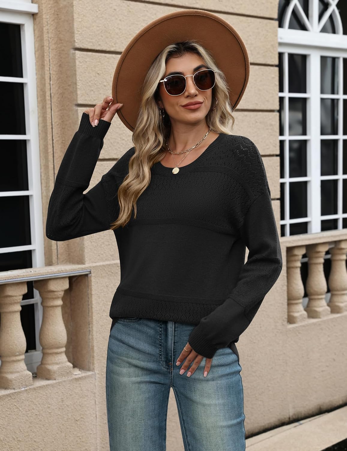Zeagoo Light-weight Pullover Sweater with Delicate Crochet-Impressed Prints women's long sleeve tops dressy casualwomen's long sleeve tops dressy casual